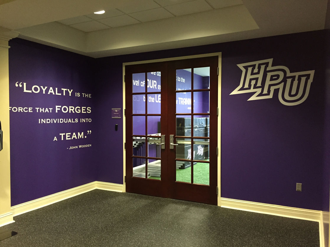 Designed while being part of the team at M3, this is a thirteen page gallery of the HPU Athletics Strength & Conditioning Room, Weight Room and Baseball Locker Room Hallway designed to motivate and inspire athletes as they train for various sports.